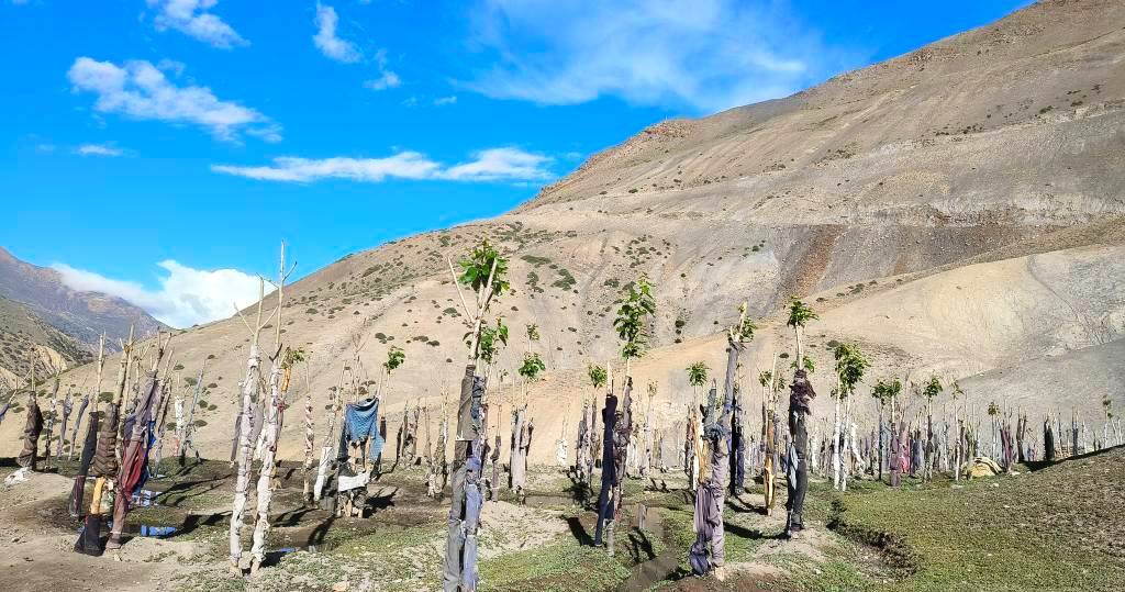 जलवायु परिवर्तनले बाढी र वन डेढेलोले जैविक विविधतामा ह्रास तथा वातावरणीय प्रदूषण निम्त्याउन थालेपछि मुस्ताङको नाङ्गा पहाडमा अन्नपूर्ण संरक्षण आयोजना इलाका संरक्षण कार्यालय (एक्याप) एक बर्षको अवधिमा तल्लो र उपल्लो मुस्ताङमा ११ हजार बढी बृक्षारोपण गरेको छ । सार्वजनिकस्थल तथा समुदायसँगको सहकार्यमा भूगोल र माटो सुहाउँदो हरियाली बनाउन तथा समुदायको आयर्आजनमा समेत सघाउने गरी गत आर्थिक बर्ष २०८१÷०८२ मा तल्लो मुस्ताङका पर्यटकीयस्थल, नदी कटानले जोखिममा परेका बस्तीलाई जोगाउन गोब्रे सल्ला, भोटे पिपल,बैस, पैयुँ लगायतका बिरुवा बृक्षारोपण तथा तारबारले संरक्षण गरिएको एक्याप जोमसोमका रेञ्जर दिपक ओलीले बताउनुभयो ।